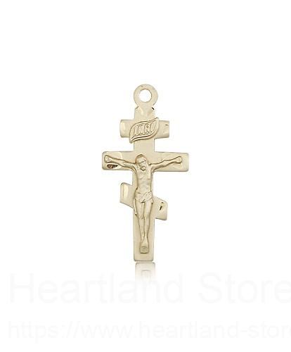 This Crucifix Pendant is made of 14 Karat Gold. The jewelry pendant is sold as pictured and does not come with a chain. All medals are gift boxed in a light blue velvet jewelry box ready for gift giving.