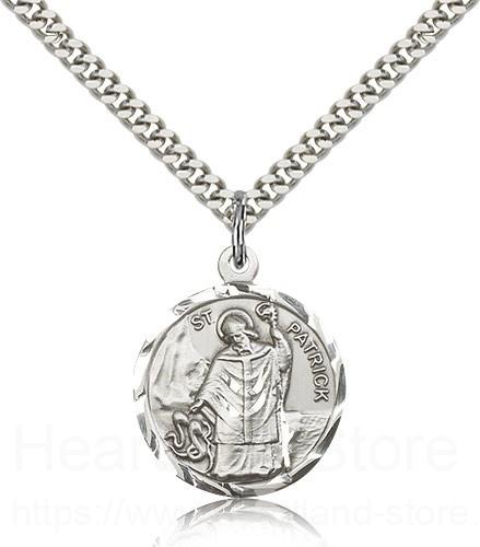 This St. Patrick Medal is paired with a 24 inch stainless steel heavy curb chain as pictured. All medals are gift boxed in a light blue velvet jewelry box ready for gift giving.