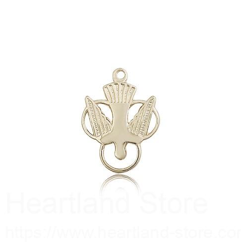 This Holy Spirit Medal is made of 14 Karat Gold. The jewelry pendant is sold as pictured and does not come with a chain. All medals are gift boxed in a light blue velvet jewelry box ready for gift giving.