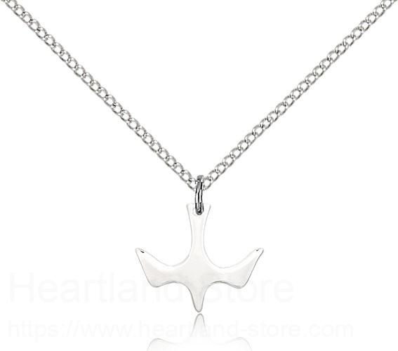 This Holy Spirit Medal is paired with an 18 inch sterling silver lite curb chain as pictured. All medals are gift boxed in a light blue velvet jewelry box ready for gift giving.