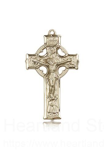 This Celtic Crucifix Pendant is made of 14 Karat Gold. The jewelry pendant is sold as pictured and does not come with a chain. All medals are gift boxed in a light blue velvet jewelry box ready for gift giving.