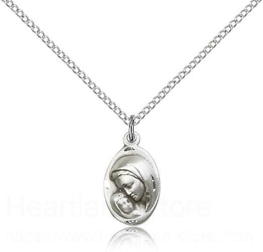 This Madonna and Child Medal is paired with an 18 inch sterling silver lite curb chain as pictured. All medals are gift boxed in a light blue velvet jewelry box ready for gift giving.