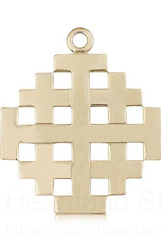 This Jerusalem Cross Pendant is made of 14 Karat Gold. The jewelry pendant is sold as pictured and does not come with a chain. All medals are gift boxed in a light blue velvet jewelry box ready for gift giving.