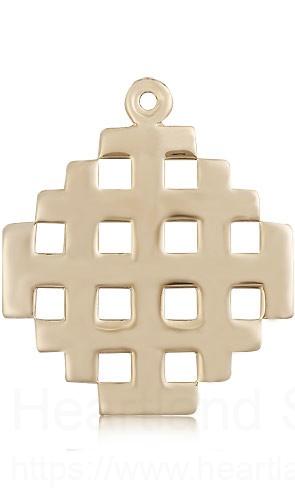 This Cross Pendant is made of 14 Karat Gold. The jewelry pendant is sold as pictured and does not come with a chain. All medals are gift boxed in a light blue velvet jewelry box ready for gift giving.