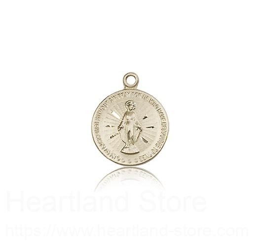 This Miraculous Medal is made of 14 Karat Gold. The jewelry pendant is sold as pictured and does not come with a chain. All medals are gift boxed in a light blue velvet jewelry box ready for gift giving.