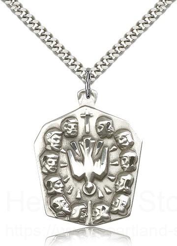 This Apostles Medal is paired with a 24 inch stainless steel heavy curb chain as pictured. All medals are gift boxed in a light blue velvet jewelry box ready for gift giving.