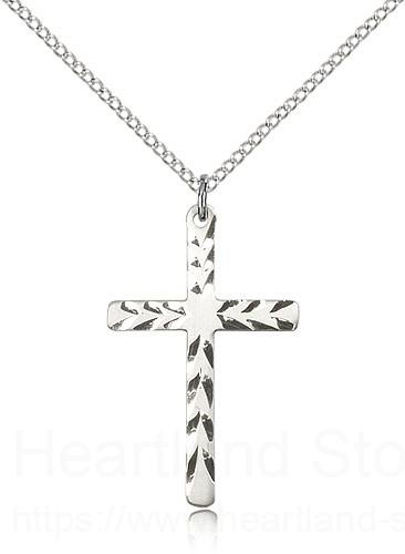 This Cross Pendant is paired with an 18 inch sterling silver lite curb chain as pictured. All medals are gift boxed in a light blue velvet jewelry box ready for gift giving.
