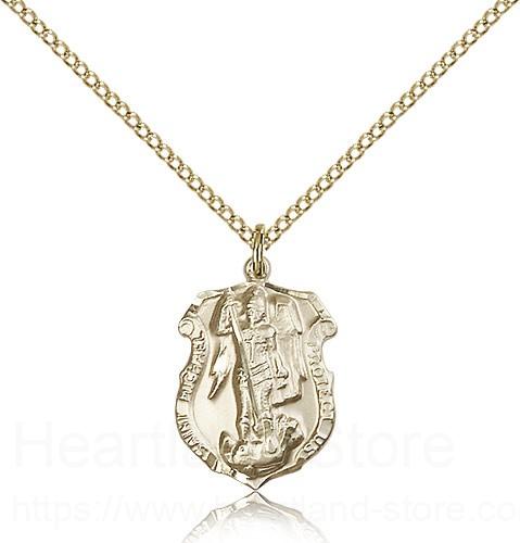 This St. Michael the Archangel Medal is paired with an 18" gold filled light curb chain as pictured. All medals are gift boxed in a light blue velvet gift box ready for gift giving.