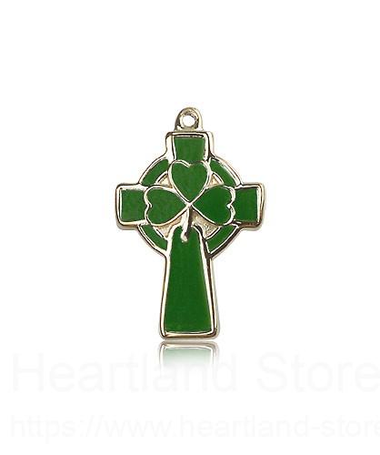 This Celtic Cross Pendant is made of 14 Karat Gold. The jewelry pendant is sold as pictured and does not come with a chain. All medals are gift boxed in a light blue velvet jewelry box ready for gift giving.