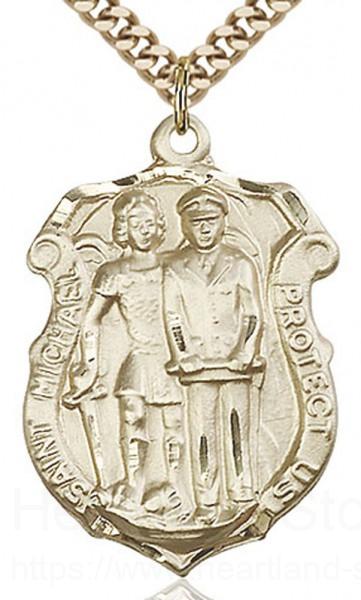 About this St. Michael the Archangel Medal, Gold Filled + 24" 2.4mm Gold Plated Endless Chain