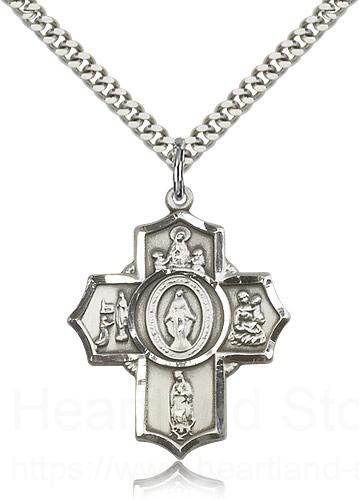 This Apparitions Medal is paired with a 24 inch stainless steel heavy curb chain as pictured. All medals are gift boxed in a light blue velvet jewelry box ready for gift giving.