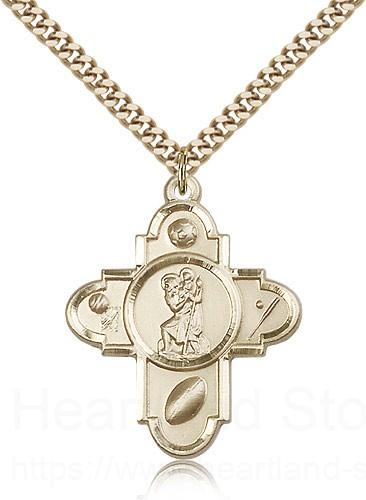 About this Sports 5 Way Cross St Christopher Medal, Gold Filled