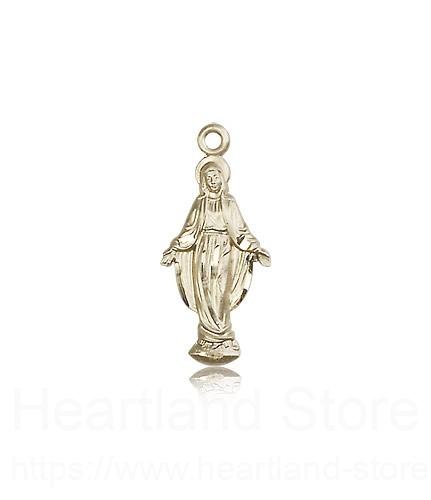 This Miraculous Medal is made of 14 Karat Gold. The jewelry pendant is sold as pictured and does not come with a chain. All medals are gift boxed in a light blue velvet jewelry box ready for gift giving.