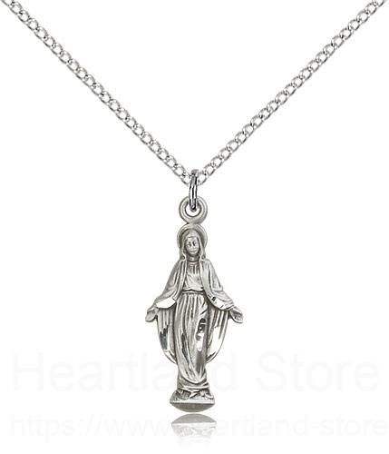 This Miraculous Medal is paired with an 18 inch sterling silver lite curb chain as pictured. All medals are gift boxed in a light blue velvet jewelry box ready for gift giving.