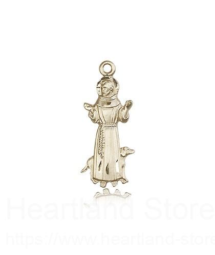 This St. Francis Medal is made of 14 Karat Gold. The jewelry pendant is sold as pictured and does not come with a chain. All medals are gift boxed in a light blue velvet jewelry box ready for gift giving.