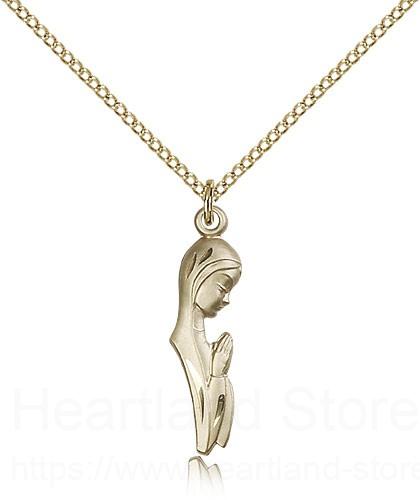 This Madonna Medal is paired with an 18" gold filled light curb chain as pictured. All medals are gift boxed in a light blue velvet gift box ready for gift giving.