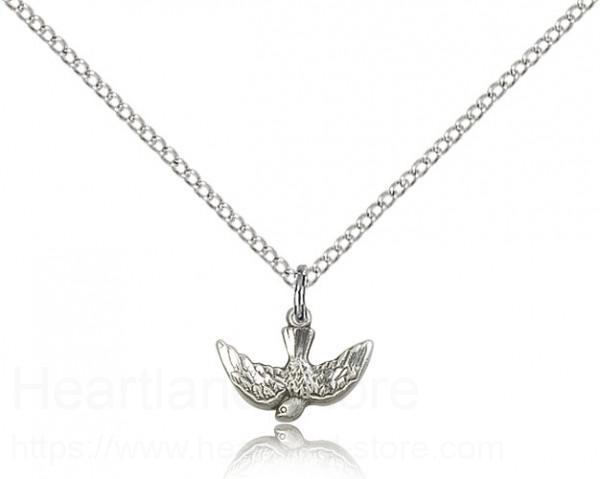 This Holy Spirit Medal is paired with an 18 inch sterling silver lite curb chain as pictured. All medals are gift boxed in a light blue velvet jewelry box ready for gift giving.