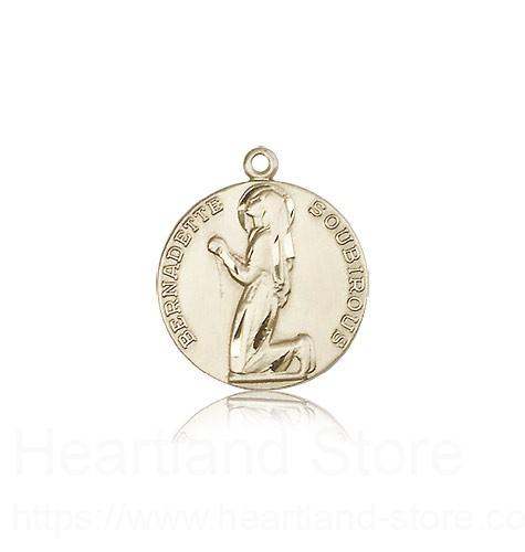 This St. Bernadette Medal is made of 14 Karat Gold. The jewelry pendant is sold as pictured and does not come with a chain. All medals are gift boxed in a light blue velvet jewelry box ready for gift giving.