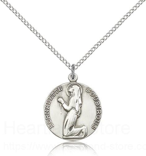 This St. Bernadette Medal is paired with an 18 inch sterling silver lite curb chain as pictured. All medals are gift boxed in a light blue velvet jewelry box ready for gift giving.