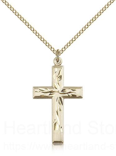 This Cross Pendant is paired with an 18" gold filled light curb chain as pictured. All medals are gift boxed in a light blue velvet gift box ready for gift giving.