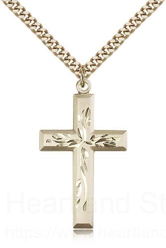 This Cross Pendant is paired with a 24 inch stainless steel gold-tone heavy curb chain as pictured. All medals are gift boxed in a light blue velvet jewelry box ready for gift giving.