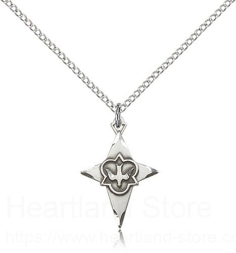 This Cross Pendant is paired with an 18 inch sterling silver lite curb chain as pictured. All medals are gift boxed in a light blue velvet jewelry box ready for gift giving.