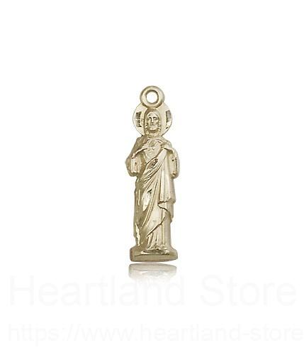 This Sacred Heart Medal is made of 14 Karat Gold. The jewelry pendant is sold as pictured and does not come with a chain. All medals are gift boxed in a light blue velvet jewelry box ready for gift giving.