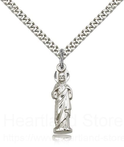 This Sacred Heart Medal is paired with a 24 inch stainless steel heavy curb chain as pictured. All medals are gift boxed in a light blue velvet jewelry box ready for gift giving.