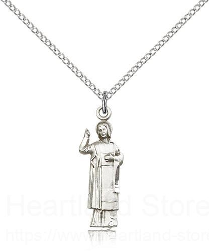 This St. Florian Medal is paired with an 18 inch sterling silver lite curb chain as pictured. All medals are gift boxed in a light blue velvet jewelry box ready for gift giving.