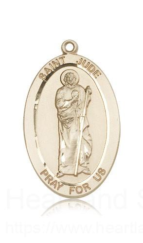 This St. Jude Medal is made of 14 Karat Gold. The jewelry pendant is sold as pictured and does not come with a chain. All medals are gift boxed in a light blue velvet jewelry box ready for gift giving.