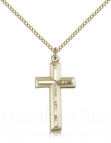 This Cross Pendant is paired with an 18" gold filled light curb chain as pictured. All medals are gift boxed in a light blue velvet gift box ready for gift giving.