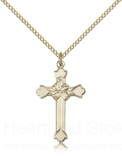 This Cross Pendant is paired with an 18" gold filled light curb chain as pictured. All medals are gift boxed in a light blue velvet gift box ready for gift giving.