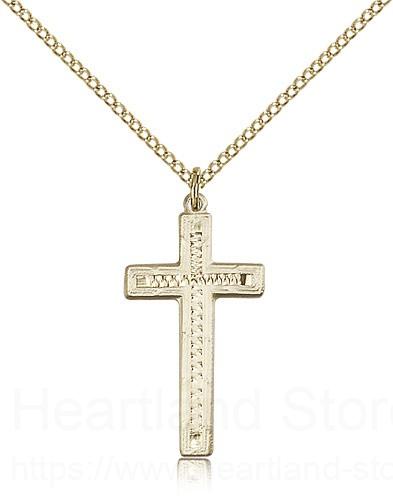 This Cross Pendant is paired with an 18" gold filled light curb chain as pictured. All medals are gift boxed in a light blue velvet gift box ready for gift giving.