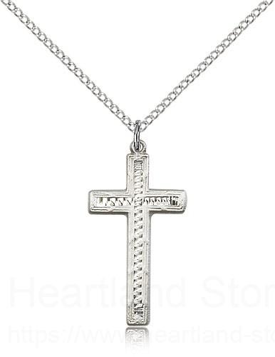 This Cross Pendant is paired with an 18 inch sterling silver lite curb chain as pictured. All medals are gift boxed in a light blue velvet jewelry box ready for gift giving.