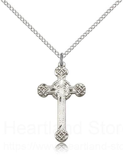 This Cross Pendant is paired with an 18 inch sterling silver lite curb chain as pictured. All medals are gift boxed in a light blue velvet jewelry box ready for gift giving.