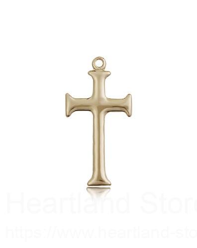 This Cross Pendant is made of 14 Karat Gold. The jewelry pendant is sold as pictured and does not come with a chain. All medals are gift boxed in a light blue velvet jewelry box ready for gift giving.