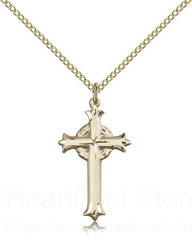 This Cross Pendant is paired with an 18" gold filled light curb chain as pictured. All medals are gift boxed in a light blue velvet gift box ready for gift giving.