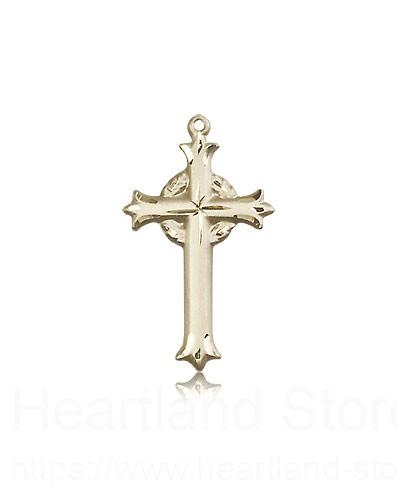 This Cross Pendant is made of 14 Karat Gold. The jewelry pendant is sold as pictured and does not come with a chain. All medals are gift boxed in a light blue velvet jewelry box ready for gift giving.