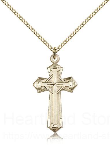 This Cross Pendant is paired with an 18" gold filled light curb chain as pictured. All medals are gift boxed in a light blue velvet gift box ready for gift giving.