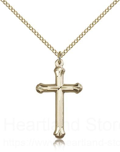 This Cross Pendant is paired with an 18" gold filled light curb chain as pictured. All medals are gift boxed in a light blue velvet gift box ready for gift giving.
