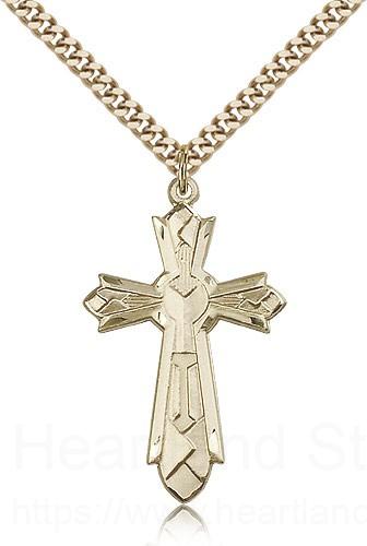 This Mosaic Cross Pendant is paired with a 24 inch stainless steel gold-tone heavy curb chain as pictured. All medals are gift boxed in a light blue velvet jewelry box ready for gift giving.