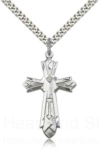 This Mosaic Cross Pendant is paired with a 24 inch stainless steel heavy curb chain as pictured. All medals are gift boxed in a light blue velvet jewelry box ready for gift giving.