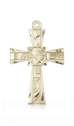 This Mosaic Cross Pendant is made of 14 Karat Gold. The jewelry pendant is sold as pictured and does not come with a chain. All medals are gift boxed in a light blue velvet jewelry box ready for gift giving.