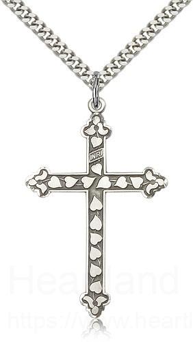 This Cross Pendant is paired with a 24 inch stainless steel heavy curb chain as pictured. All medals are gift boxed in a light blue velvet jewelry box ready for gift giving.