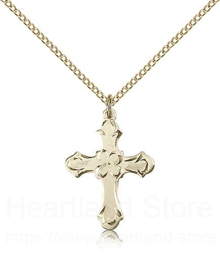 This Cross Pendant is paired with an 18" gold filled light curb chain as pictured. All medals are gift boxed in a light blue velvet gift box ready for gift giving.