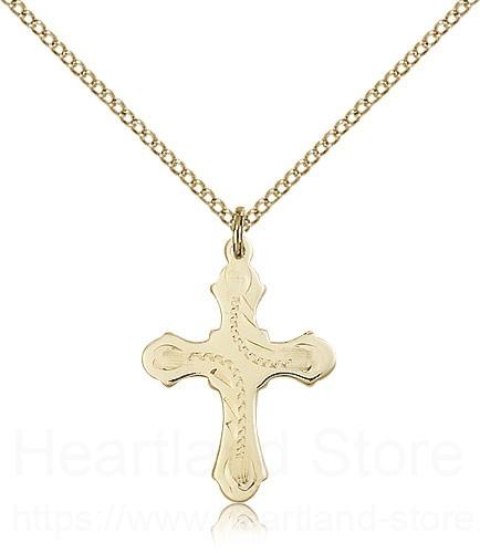 This Cross Pendant is paired with an 18" gold filled light curb chain as pictured. All medals are gift boxed in a light blue velvet gift box ready for gift giving.