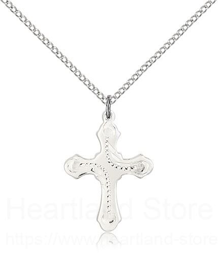 This Cross Pendant is paired with an 18 inch sterling silver lite curb chain as pictured. All medals are gift boxed in a light blue velvet jewelry box ready for gift giving.