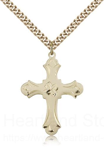 This Cross Pendant is paired with a 24 inch stainless steel gold-tone heavy curb chain as pictured. All medals are gift boxed in a light blue velvet jewelry box ready for gift giving.