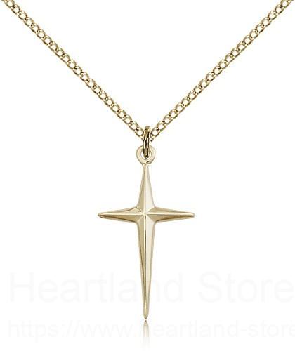This Cross Pendant is paired with an 18" gold filled light curb chain as pictured. All medals are gift boxed in a light blue velvet gift box ready for gift giving.