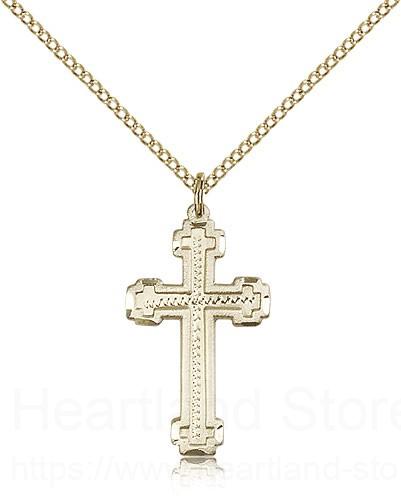 This Cross Pendant is paired with an 18" gold filled light curb chain as pictured. All medals are gift boxed in a light blue velvet gift box ready for gift giving.